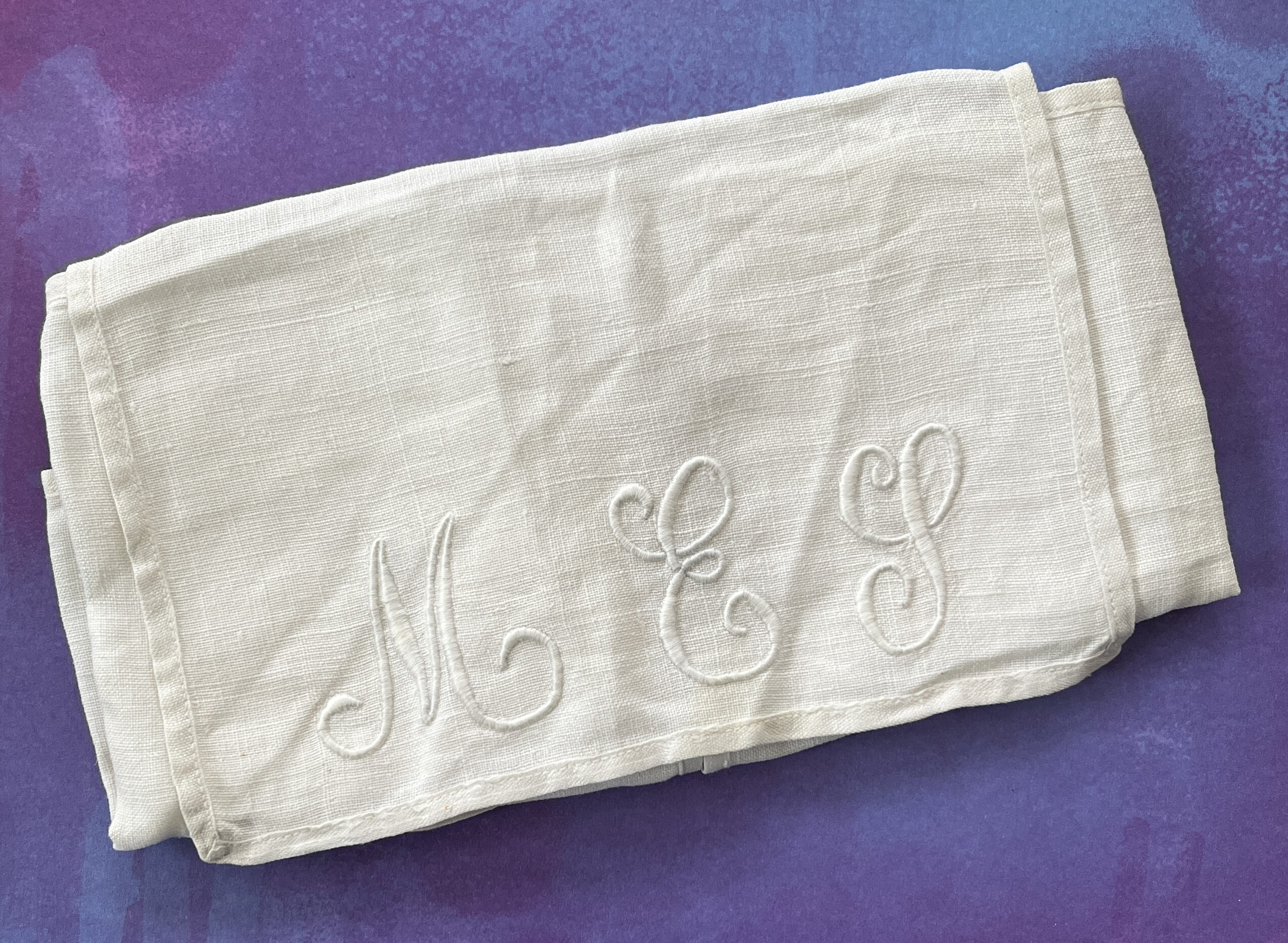 The embroidered piece above was my grandma Muriel’s. Those are her initials and she probably did the stitching. I think this is an embroidered case for something delicate; it folds up like an envelope and snaps closed.
