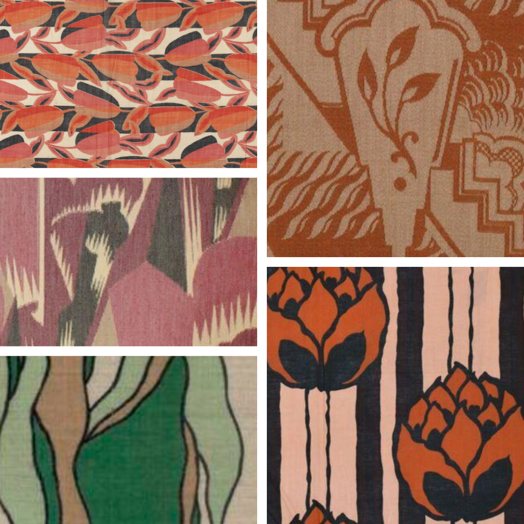 So instead of being specifically inspired by the show, I looked to the broader landscape of the world in 1929 and dug into the Victoria and Albert Museum textiles collection looking for fabrics of 1929. You can see that inspiration up above. I looked at both the popular colors and shapes for both clothing and home decor fabrics.