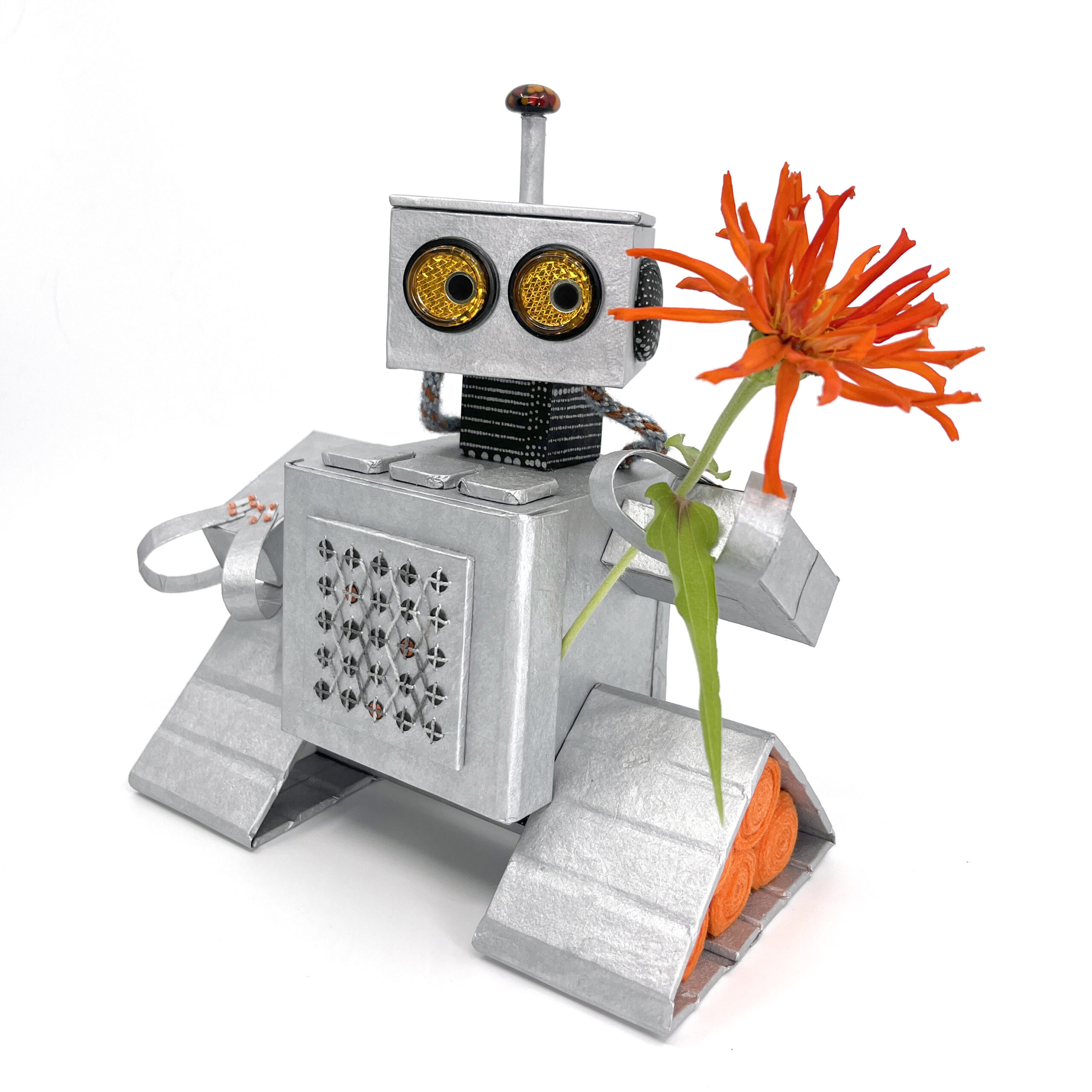 Orange: The tools on my belt included a knitting needle gauge and an angle marking ruler. Andy has a USB cable.