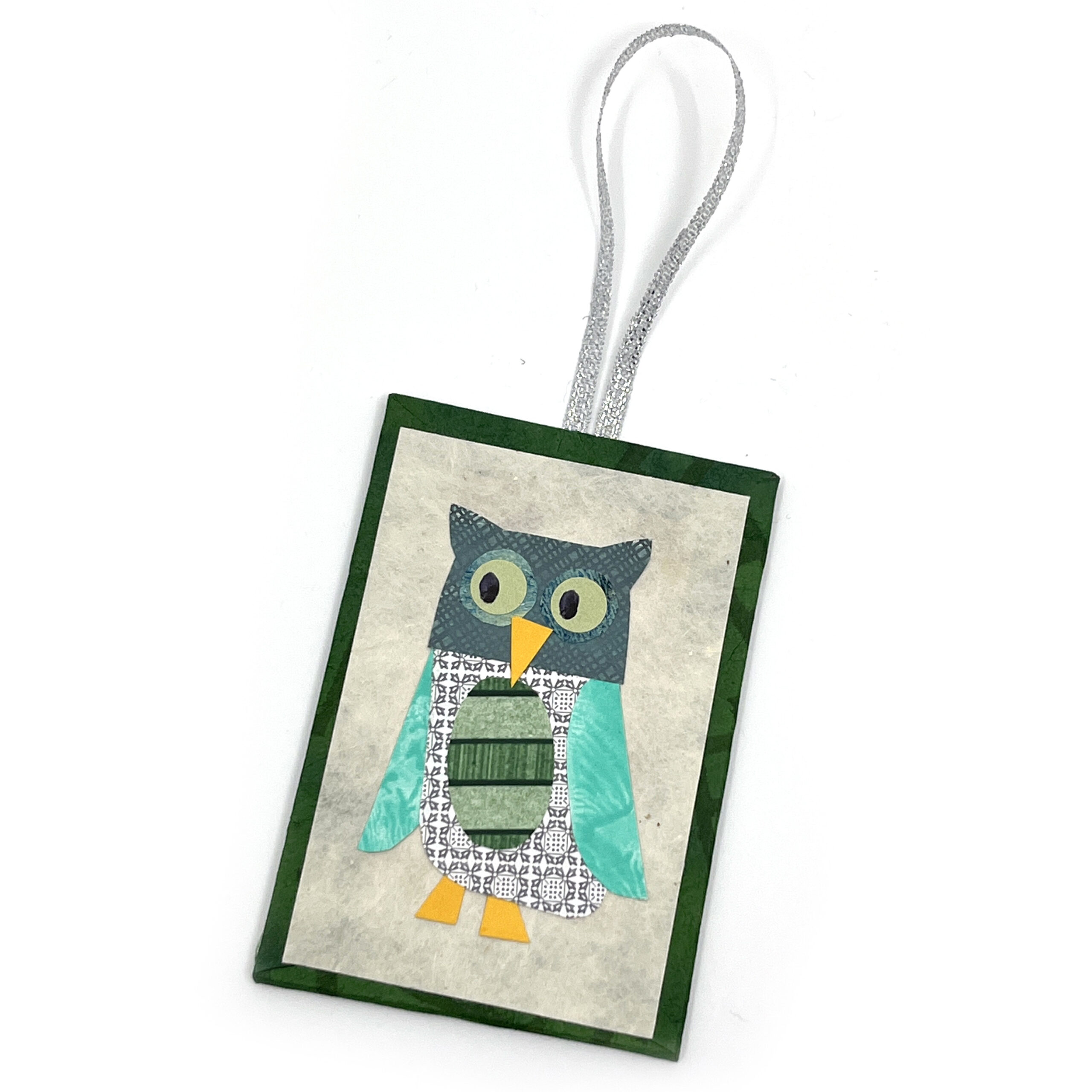 Create a paper collage illustration of a quizzical owl from recycled security envelopes and handmade and decorative papers. We’ll mount your illustration on a piece of paper-covered bookboard to make a tiny piece of art you can hang.