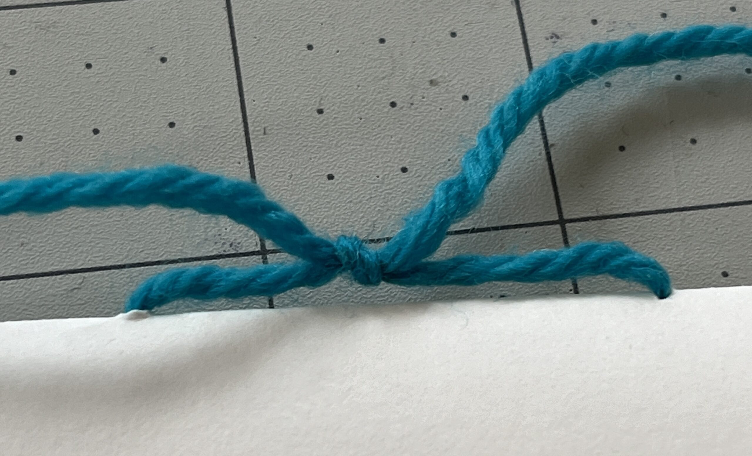 I use square knots often in class projects and I had a whole group recently that had never done one before so I thought I would make a very fast video tutorial. When I learned to tie a square knot in Girl Scouts a zillion years ago, we learned the mneumonic “left over right, right over left” to help remember the steps. In a class I took a few days ago she said “short over long, short over long”. Both of those work great!